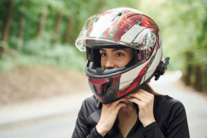 頭にしっかりフィットし、走行中にずれないものを選びましょう。バイク用品店でヘルメットを購入する場合、ご自身の頭部の大きさや形状に合うように、プロのスタッフがインナークッションの厚みを調整してくれたりします。