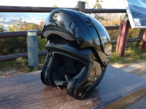 フルフェイスとジェットヘルメットの良いとこ取りで、あご部分が開閉可能です。