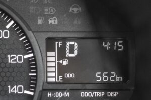 給油口の位置を確認する簡単な方法は、運転席のメーターパネルにある燃料計を見ることです。燃料計のガソリンポンプのマークの隣に、小さな三角の矢印が描かれているのをご存知でしょうか?